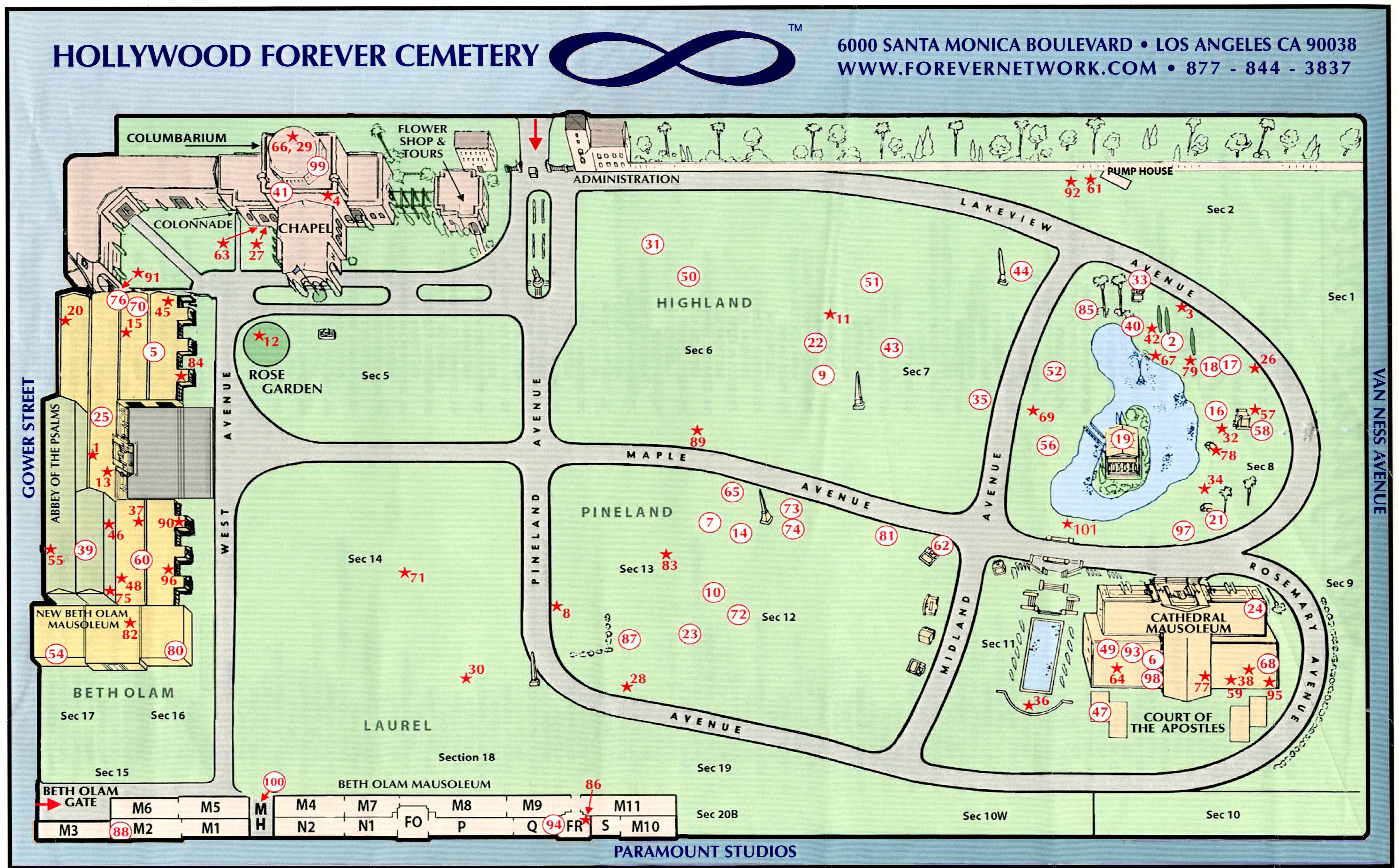 Hollywood Memorial- founded in 1899 as the “only” cemetery in Hollywood, the grounds became internationally famous for the number of movie stars and prominent locals buried there.